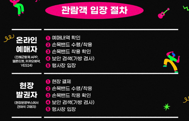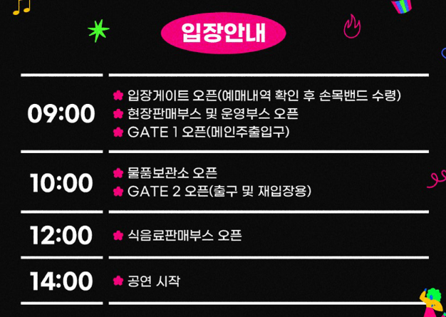 29일, 30일 라인업을 확인하시고 보고 싶은 가수분이 오시는 날에 공연을 즐기러 가시면 됩니다. 각 가수분들의 공연 시간이 정해져 있습니다. 아래 사진을 참고해 주세요.