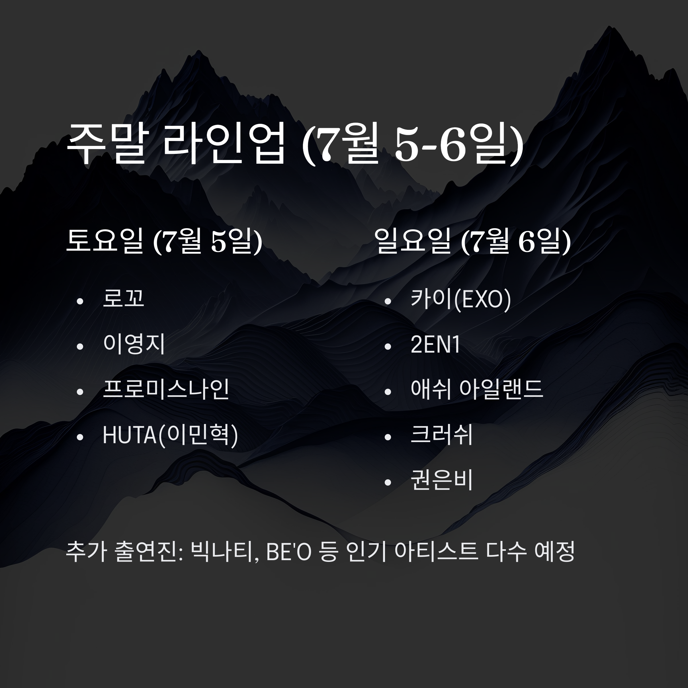 | 7월 6일(일) | 2EN1,카이(EXO), 애쉬 아일랜드, 크러쉬, 권은비, PH-1, GRAY, KISS OF LIFE |