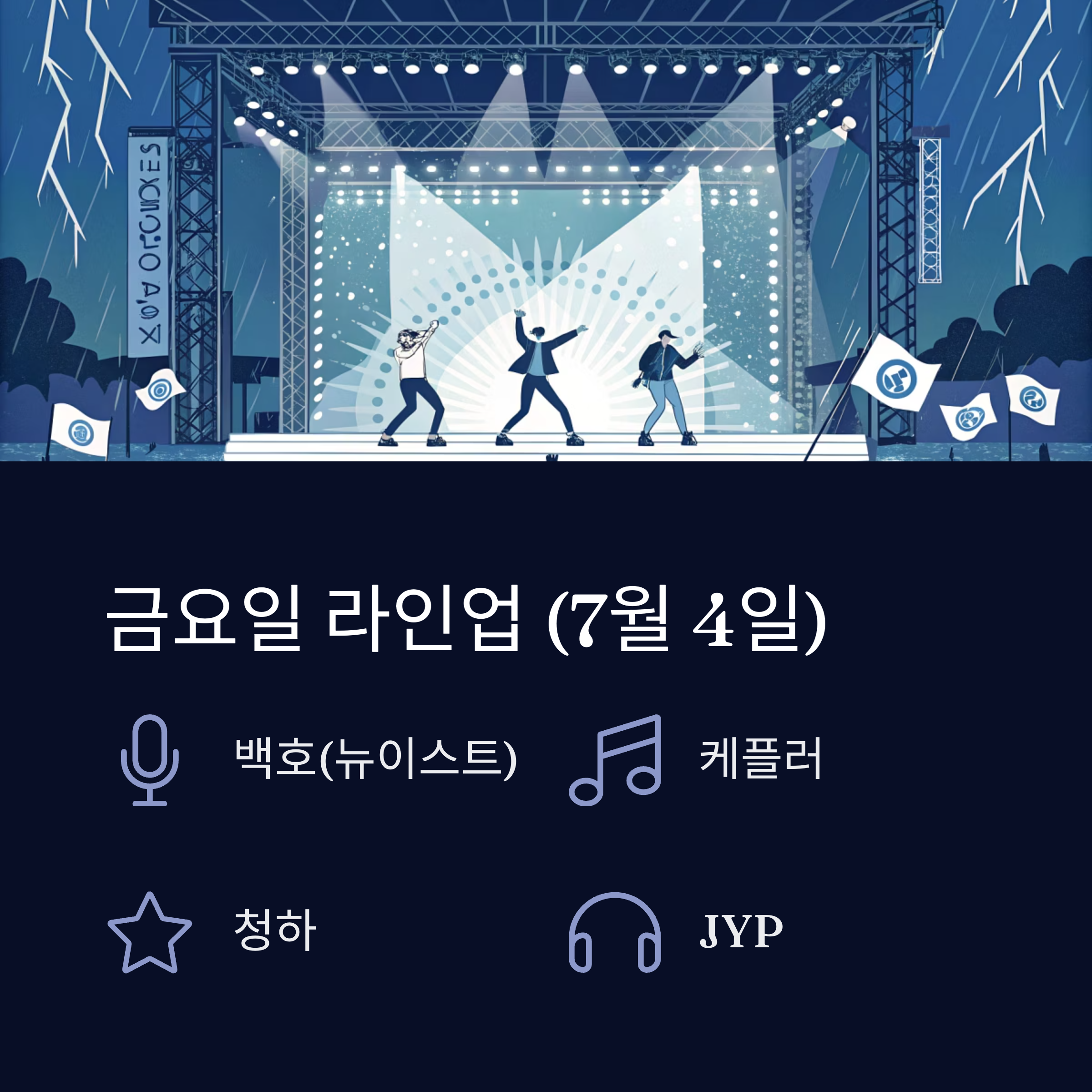 | 7월 4일(금) | 백호(뉴이스트), 케플러, 청하, Sik-K, JYP, 하온 |