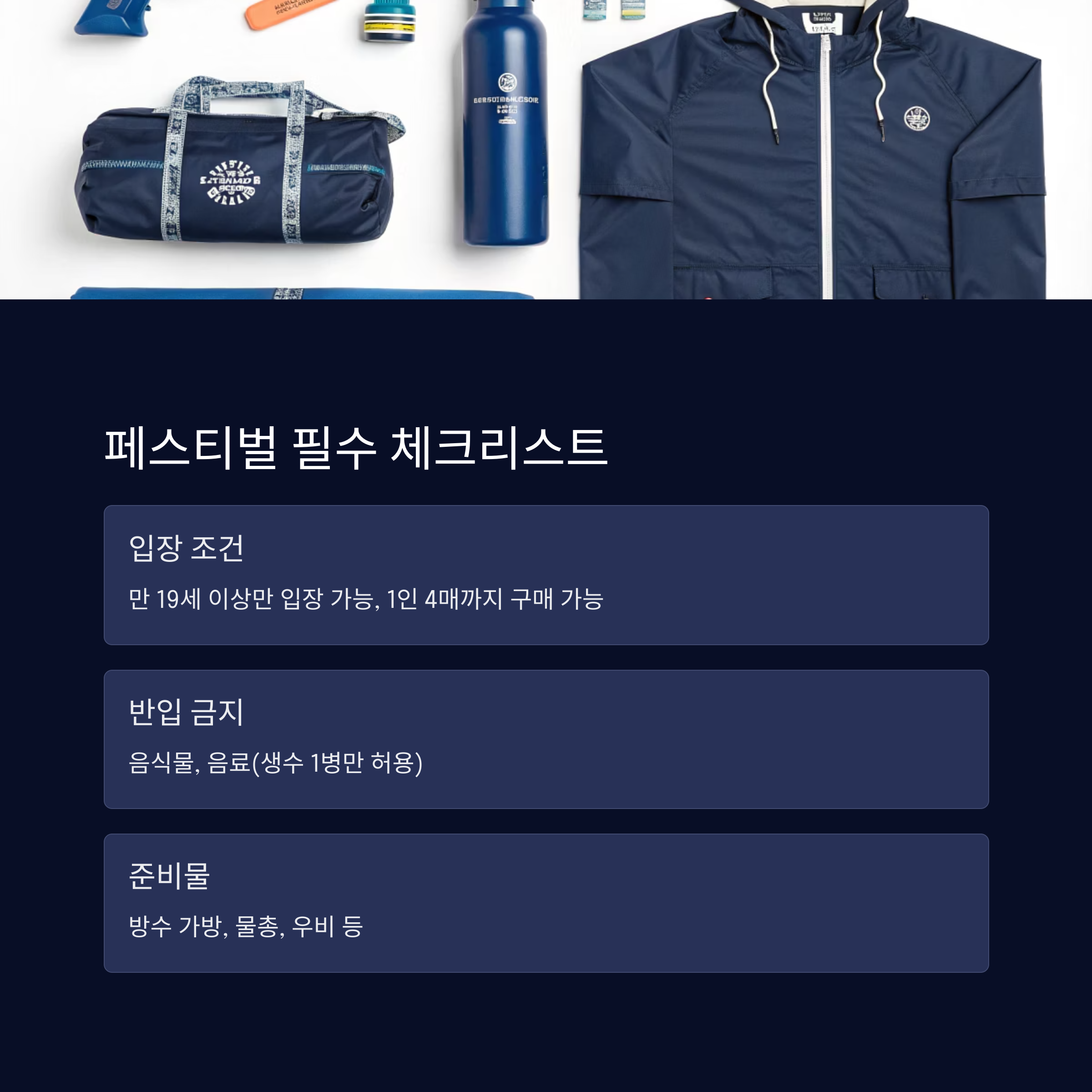 페스티벌을 100% 즐기기 위한 준비물과 유의사항을 반드시 숙지하세요.